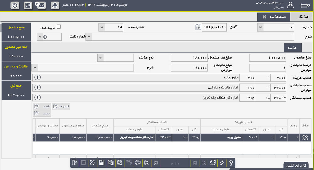- ✅ مدیریت سند هزینه (تفکیک مبلغ مشمول و غیر مشمول مالیات جهت ارسال به TTMS)
