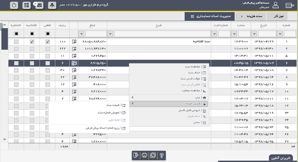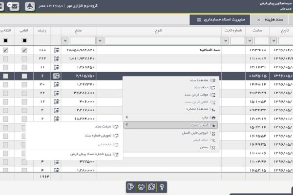 - ✅ مدیریت اسناد حسابداری (مشاهده، تعویض شماره، ادغام جابجایی، شیفت، چاپ و ...)