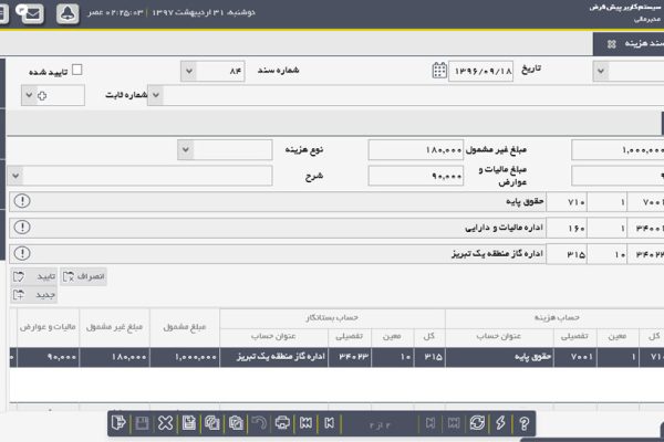ماژول حسابداری با قابلیت های مدیریت اسناد حسابداری، به کاربران این امکان را می دهد که اسناد مختلف را به صورت دقیق و سازمان یافته ایجاد و کنترل کنند. در این سیستم، مدیریت سند دستی به راحتی امکانپذیر است، به طوری که کاربران می توانند اسناد مالی را به صورت دستی ثبت و اصلاح کنند. علاوه بر این، مدیریت سند هزینه به ویژه با تفکیک مبلغ مشمول و غیر مشمول مالیات، فرآیند ارسال به سامانه TTMS را تسهیل می کند و از لحاظ مالیاتی دقت بالایی را فراهم می آورد. این ویژگی ها باعث می شود تا سازمانها بتوانند اسناد مالی خود را با دقت و انطباق کامل با قوانین مالیاتی و حسابداری مدیریت کنند.