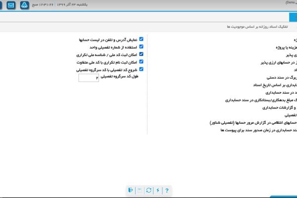 - ✅ تفکیک اسناد روزانه حسابداری بر اساس موجودیت ها (خزانه داری، انبارداری و ...)